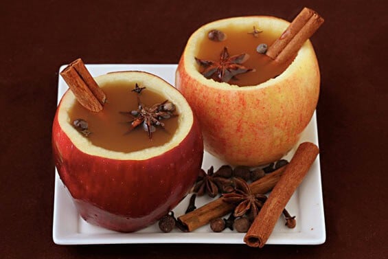 - Pour the cider mixture into the cored apples. Top each apple with a small pat of butter.