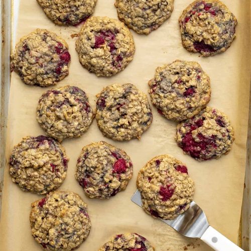 For Breakfast: Raspberry oatmeal cookies paired with a steamy cup of coffee or a latte make a sweet, satisfying start to the day. Serve alongside fresh fruit or Greek yogurt to balance the sweetness and keep things fresh.