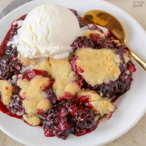 Serve this warm, preferably with a big scoop of vanilla Ice Cream or whipped cream. The contrast of the warm, fruity cobbler with the cold, creamy ice cream is pure bliss. Enjoy every bite!