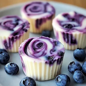 These blueberry swirl yogurt bites are wonderfully versatile, fitting into almost any meal or occasion. For a delightful start to your day, they’re fantastic alongside a steaming mug of coffee or a glass of fresh orange juice. They offer a cool, refreshing burst of flavor that’s much lighter than a heavy breakfast. At a weekend brunch spread, imagine these nestled amongst fruit platters and pastries – they add a pop of color and a healthier option that guests will appreciate. For a light, guilt-free dessert, they’re perfect after a hearty meal. The yogurt base is satisfyingly creamy, and the fruit provides a natural sweetness. On those cozy afternoons when you’re just looking for a little something sweet to tide you over, they are an absolute godsend. My personal family tradition is to have a bowl of these on the coffee table during movie nights – it’s a treat everyone can agree on, and it’s so much better than reaching for bags of chips or candy. They also pair beautifully with a side of fresh berries or a drizzle of extra honey for an extra touch of indulgence.