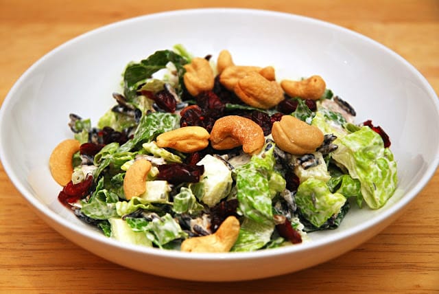 - In a large bowl, combine the shredded chicken, cooked wild rice, chopped celery, red onion, dried cranberries, and pecans.
