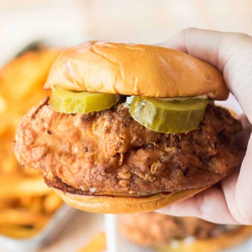 This Popeyes chicken sandwich copycat is best enjoyed immediately while the chicken is piping hot and extra crispy. The combination of the hot, crunchy chicken, the soft bun, the tangy pickles, and the creamy sauce is pure perfection. Prepare for some serious smiles around your table!
