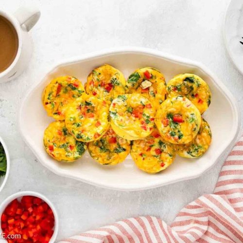 Baking Tips: Keep an eye on the egg bites while they’re baking, as baking times may vary depending on your oven. They’re done when they’re puffed and golden brown and a toothpick inserted into the center comes out clean.