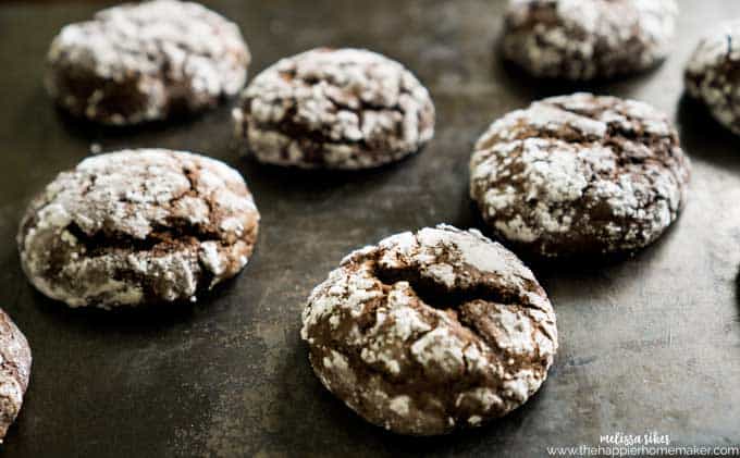 - Bake 10-12 minutes until cookies crack on top. Cool on a wire rack.