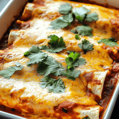 Now it’s time for the grand finale before baking: the cheese! Sprinkle the shredded cheese evenly over the top layer of enchilada sauce. Make sure to get it all the way to the edges so you get that irresistible cheesy crust. Pour the last bit of enchilada sauce over the cheese – this helps it melt beautifully and prevents the cheese from drying out. Cover the baking dish tightly with aluminum foil. This traps the steam and helps cook everything through evenly. Pop it into your preheated oven and bake for about 20-25 minutes. You want to see the sauce bubbling around the edges. Then, remove the foil and bake for another 5-10 minutes, or until the cheese is melted, bubbly, and just starting to turn golden brown. The smell filling your kitchen at this point is pure heaven!