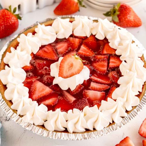 Once the glaze is set, your strawberry jello pie is ready to be admired and devoured! For the cleanest slices, I find it helps to run a sharp knife under hot water and wipe it dry between each cut. Serve it cold. It’s so refreshing and light, perfect on its own!