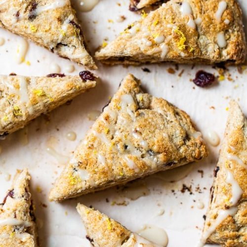 These Lemon Cranberry Scones studded with dried cranberries are topped with a lemon glaze; a perfect Sunday morning treat.