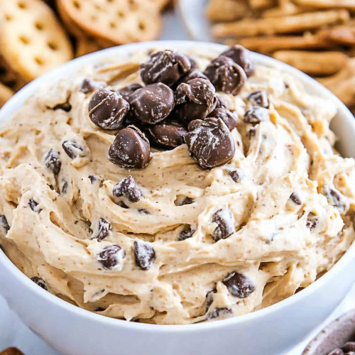 Pop the dip in the fridge for about 30 minutes to let the flavors meld and firm up just a bit. Then, serve with your favorite dippers — think apple slices, pretzels, graham crackers, or even carrot sticks for a fun twist.