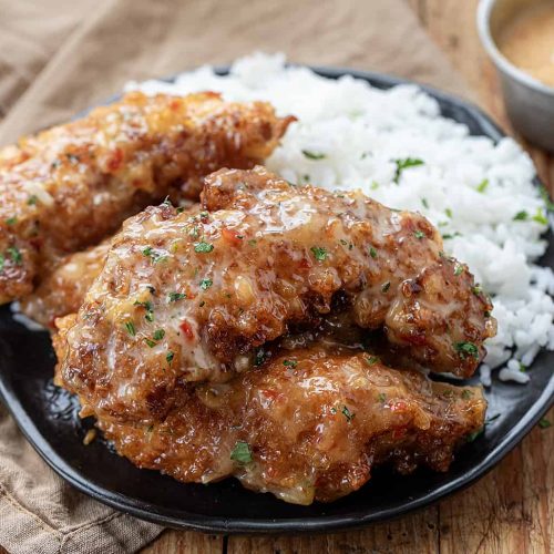 Freezer Instructions: If you want to freeze this, freeze the cooked, uncoated chicken pieces wrapped tightly in plastic wrap and foil for up to one month. Freeze sauce in a small container separately. Thaw overnight in the fridge. Reheat chicken in a hot oven or air fryer to retain the crunch, then toss with freshly warmed sauce.