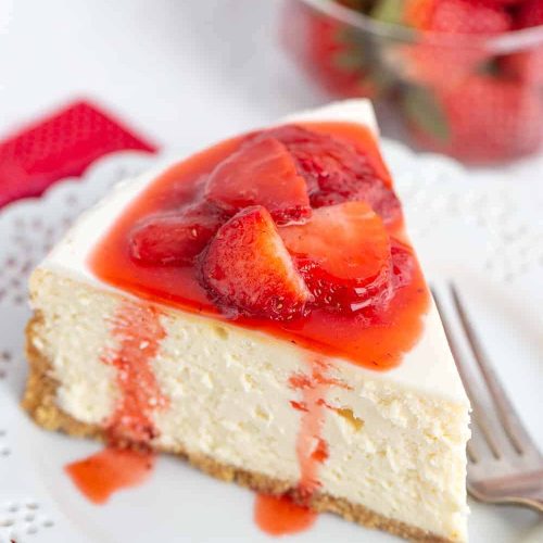 To get the cleanest slices, I like to run my knife under hot water and dry it before each cut. This helps the knife glide through the creamy cheesecake without dragging. Serve chilled, and watch it disappear! It’s fantastic on its own, but a dollop of fresh whipped cream is never a bad idea. This is perfect for any occasion, and the vibrant red from the strawberries just makes it look so inviting.