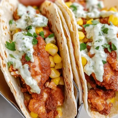 Okay, so these tacos are honestly best enjoyed immediately because that crispy chicken is just divine when it’s fresh. However, life happens! If you find yourself with leftovers, here’s how to handle them. For storing, I strongly recommend keeping the components separate if possible. Store the crispy chicken in an airtight container in the refrigerator for up to 2 days. The street corn mixture can also be stored in an airtight container in the fridge for up to 3 days. The tortillas are best stored separately and gently rewarmed before serving. Reheating the chicken can be a bit tricky if you want to maintain that perfect crispiness. The absolute best way is to reheat it in a toaster oven or a regular oven at around 375°F (190°C) for about 5-8 minutes, or until heated through and crispy again. Microwaving will make it soft and frankly, a bit sad. If you must use the microwave, do it for very short bursts and know that the texture will change. You can gently warm the street corn mixture in a skillet over low heat or briefly in the microwave. For the tortillas, a quick warm-up in a dry skillet or a few seconds in the microwave does the trick. If you’re planning to freeze parts of this, I’d only recommend freezing the fried chicken pieces. Once fully cooled, wrap them tightly in plastic wrap, then place them in a freezer-safe bag. They’ll keep for about 1-2 months. Thaw them in the refrigerator overnight, then reheat using the oven or toaster oven method. The corn mixture doesn’t freeze particularly well; the texture can get a bit watery. The glaze timing advice is simple: there isn’t really a separate glaze to worry about! The creamy element is mixed into the corn right before serving, so there’s no concern about it getting soggy from being stored too long.