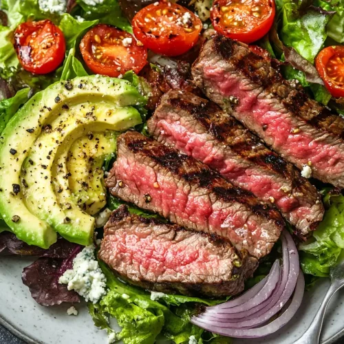 There are so many reasons why this grilled steak salad has become a staple in my kitchen, and I just know you’re going to fall in love with it too. First off, the flavor is just out of this world. That perfectly grilled steak, with its smoky char, is the star of the show, and when it’s paired with the crisp, fresh vegetables and that vibrant dressing, it’s pure magic. It hits all the right notes: savory, tangy, fresh, and just a little bit smoky. It’s incredibly satisfying without feeling heavy, which is my favorite kind of meal. Then there’s the simplicity. I know “grilled steak” might sound intimidating to some, but honestly, it’s so easy. Once the steak is on the grill, the rest of the salad comes together in a flash. It’s a lifesaver on busy weeknights when you want something impressive but don’t have a lot of time. Plus, it’s surprisingly cost-effective, especially if you catch your favorite cut of steak on sale. You can often stretch a pound of steak to feed four people when it’s part of a big, generous salad like this. And the versatility! This isn’t a one-and-done recipe. You can easily swap out the greens, add different veggies based on what’s in season, or even change up the dressing. I’ve even made a lighter version with just grilled sirloin tips and a simple vinaigrette when I’m feeling extra health-conscious. What I love most, though, is how it makes a weeknight feel like a special occasion. It’s proof that you don’t need to spend hours cooking to eat something truly delicious and nourishing.