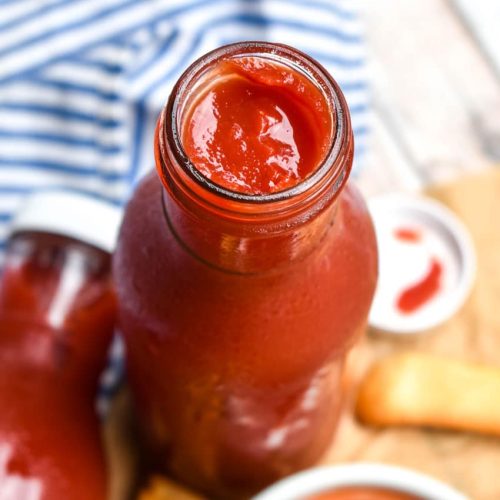 Once cooled, spoon your homemade ketchup into clean jars. If you’re ready to serve it immediately, or store it in the refrigerator, just a few minutes before serving. I like to keep a jar of this in the fridge at all times. Is it good for dipping, drizzling, or slathering? The flavor just gets better as it sits.