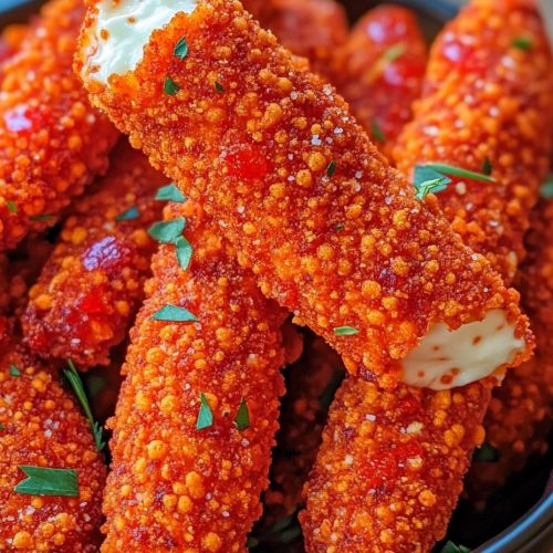 So there you have it – the ultimate guide to making Hot Cheeto Mozzarella Sticks that are sure to impress! I really hope you give these a try. They’re more than just a snack; they’re an experience. That satisfying crunch, the burst of spicy flavor, and that glorious, gooey mozzarella pull – it’s pure happiness. They’re perfect for when you want to add a little excitement to your snack repertoire, impress your friends at a party, or just treat yourself to something incredibly delicious. I’ve made these countless times, and they never fail to bring a smile to everyone’s face. They remind me of fun get-togethers and happy, lazy afternoons. If you’re a fan of mozzarella sticks and love a little heat, these are an absolute must-try. Don’t be intimidated; they’re surprisingly simple and the results are ridiculously rewarding. If you enjoyed these, you might also love my recipe for Spicy Garlic Parmesan Wings or my Loaded Nacho Fries – they’re in a similar flavor vein! I can’t wait to hear how yours turn out, so please leave a comment below and let me know your favorite dipping sauce or any fun variations you tried. Happy snacking!