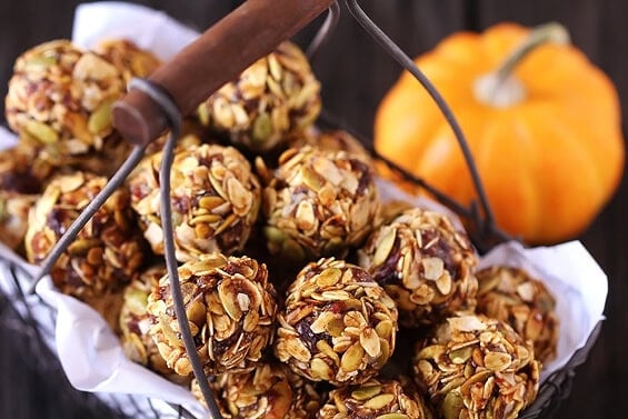 These pumpkin no-bake energy bites are so versatile, they fit into pretty much any meal or snack occasion!