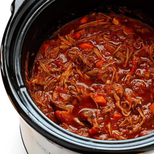 - Transfer the beef to a slow cooker.