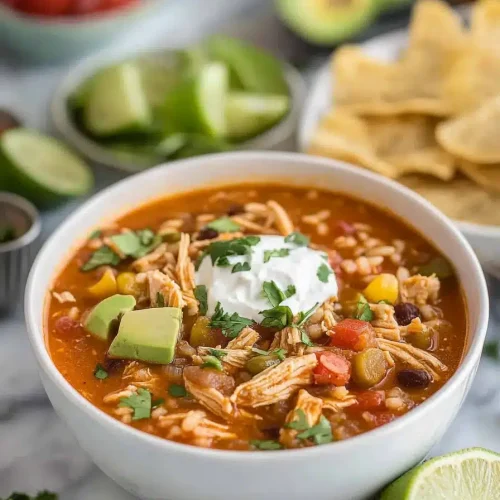 This comforting Slow Cooker Chicken Rice Soup is perfect for a chilly evening. Tender chicken, fluffy rice, and flavorful vegetables simmer together for a hearty and satisfying meal.