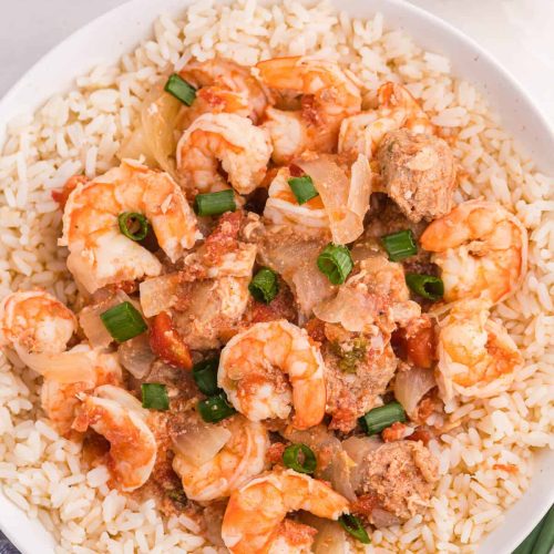 For Brunch: Plate up jambalaya with a simple green salad and a mimosa or Bloody Mary. The bold flavors of the dish pair surprisingly well with bubbly and fresh citrus cocktails. It’s a fun surprise dish for guests that feels festive but doesn’t require hours in the kitchen.