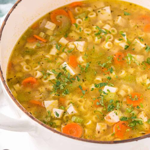 This soup is best enjoyed warm and is a perfect way to use up leftover holiday turkey. Feel free to add other vegetables you have on hand, such as peas or corn.