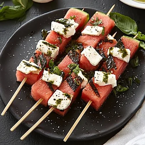 The magic of these Watermelon Feta Skewers lies in their beautiful simplicity. You’re essentially just cubing fresh, ripe watermelon and some firm feta cheese, and then threading them onto skewers. A little optional drizzle of balsamic glaze or a sprinkle of fresh herbs is the perfect finishing touch. It takes mere minutes to assemble, making it an absolute dream for parties, picnics, or even just a quick, healthy snack. No cooking required, no complicated techniques – just pure, unadulterated summer freshness that’s ready in a flash!