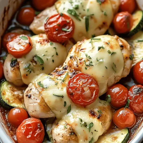 A delicious and creamy casserole packed with tender chicken, zucchini, corn, and bell peppers, all baked in a rich cheese sauce and topped with melted mozzarella.