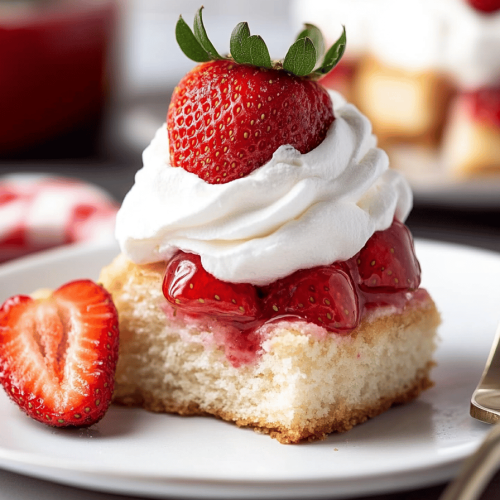 This light, no-bake strawberry dessert combines crushed pineapple, strawberry gelatin, and creamy whipped topping with fresh strawberries for a refreshing treat.