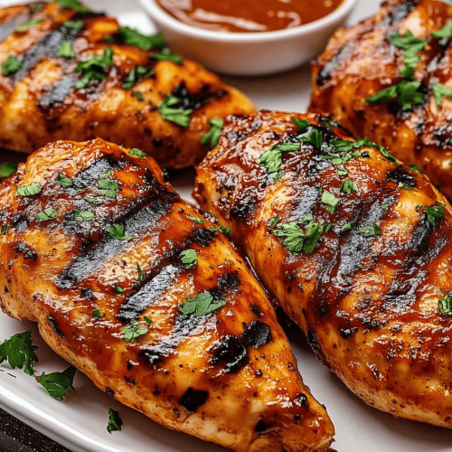 Juicy chicken breasts marinated in a savory bourbon glaze, grilled to caramelized perfection and finished with a tangy BBQ glaze for a flavorful weeknight dinner.