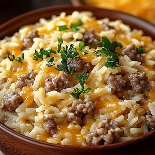 A comforting and flavorful Hamburger Rice Casserole, perfect for a weeknight dinner. Ground beef, rice, and vegetables are baked to perfection in a creamy sauce.
